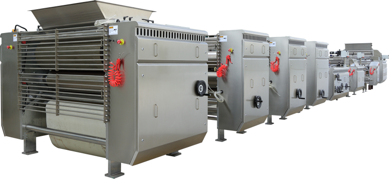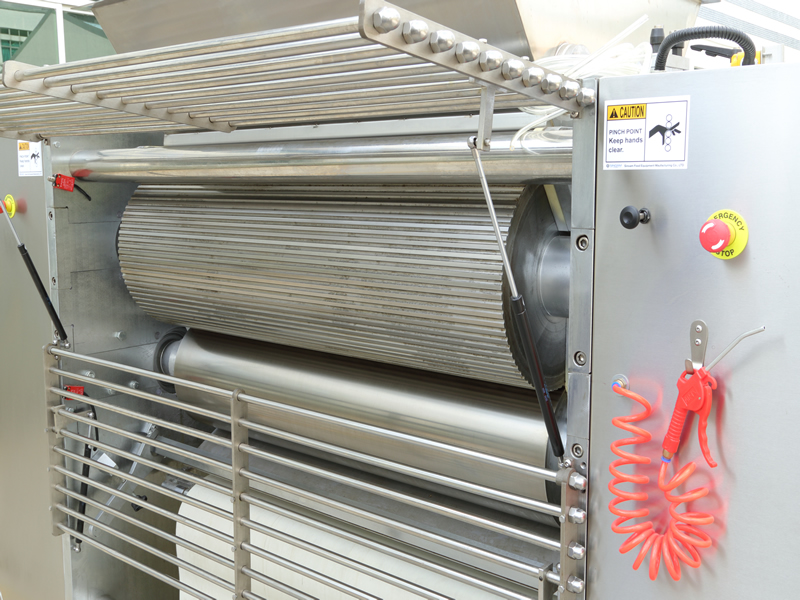 本設備將打好的面團通過軋輥軋成面皮,適用于韌性面團。