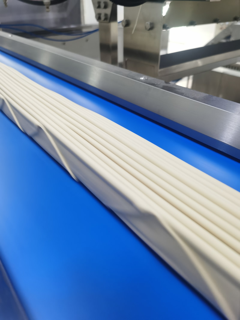 面皮在成型的后, 余料通過該設備回收到喂料機重復使用 采用背掛式電機減速機,線速度變頻可調,氣動張緊。 304不銹鋼機架輸送帶方便更換,動力膠輥拆卸容易