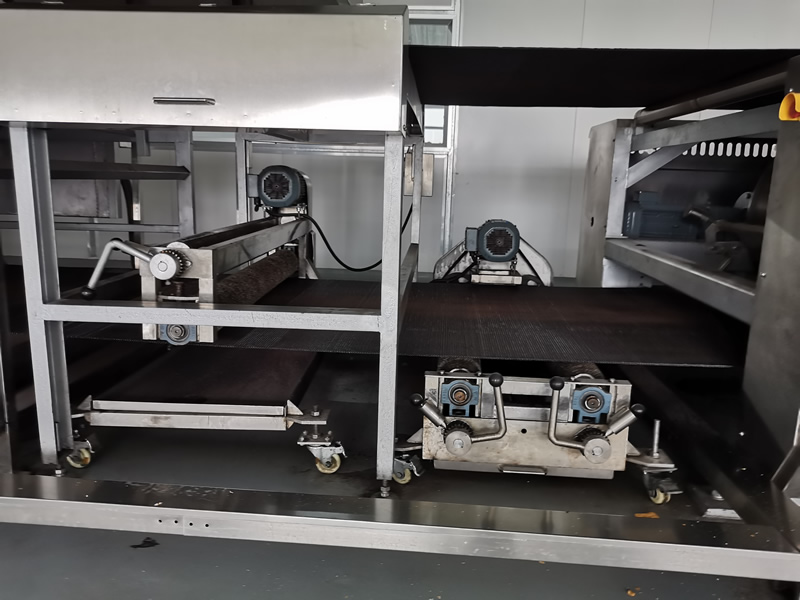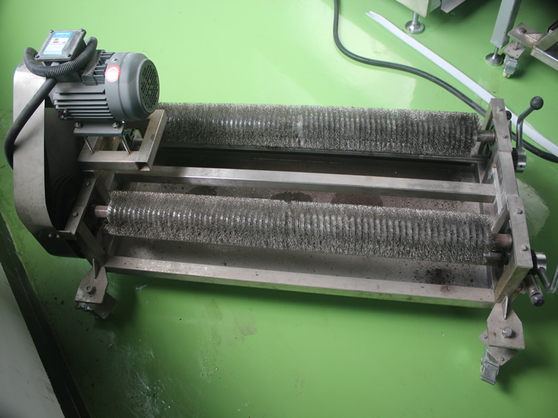 調(diào)偏裝置設(shè)為前后雙定位系統(tǒng),微電機(jī)帶動(dòng),極限位置檢測(cè)動(dòng)作,有自動(dòng)回中位功能,過(guò)位報(bào)警功能,PLC 控制。 網(wǎng)帶清洗裝于爐子后底部,配備多個(gè)螺旋鋼絲刷,每個(gè)鋼絲刷單獨(dú)電機(jī)帶動(dòng),下部有接料盆,每根鋼絲刷可自由推出維護(hù)清潔。